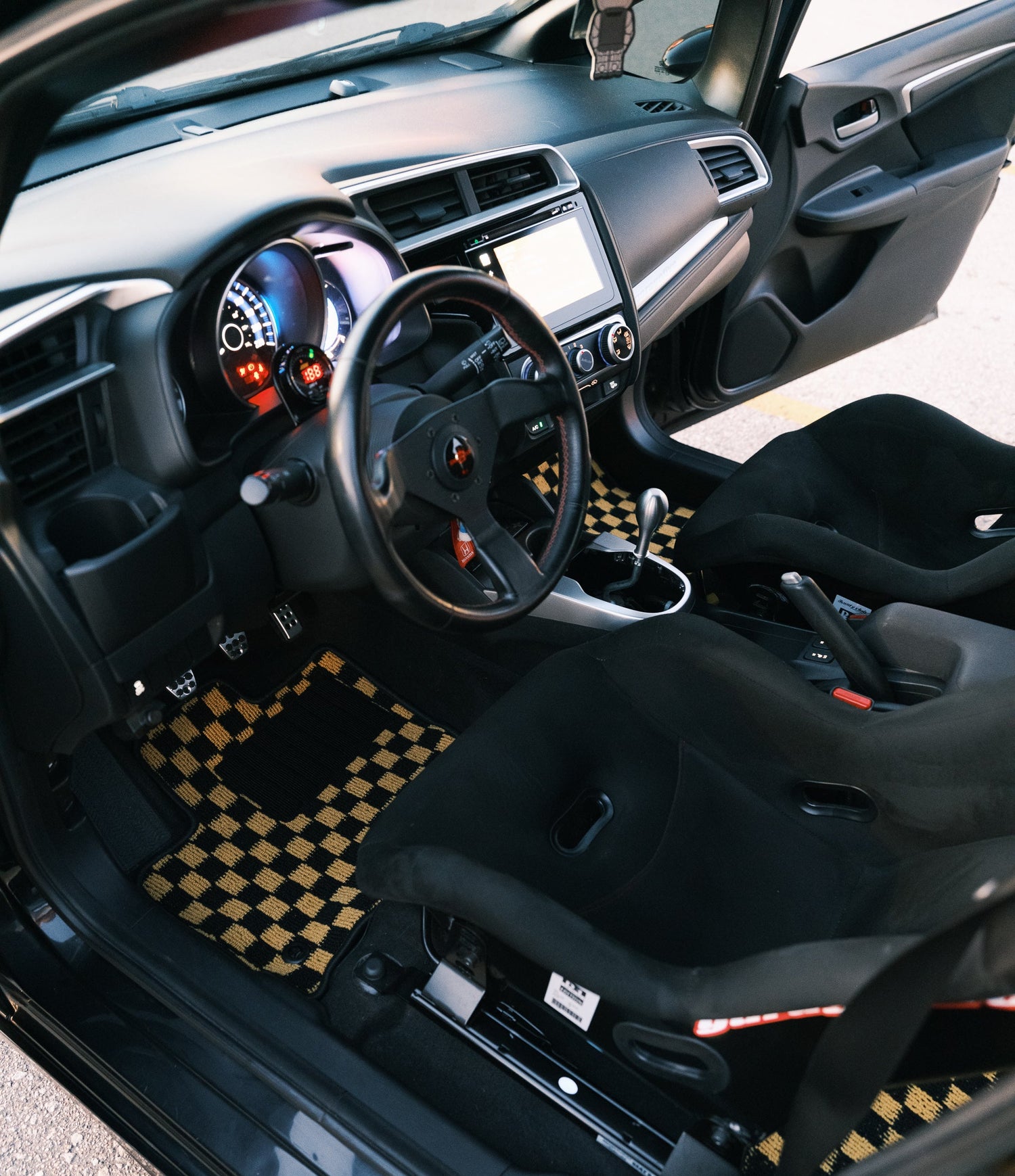 Checkered floor mats for Honda Fit GK5 (15-20)